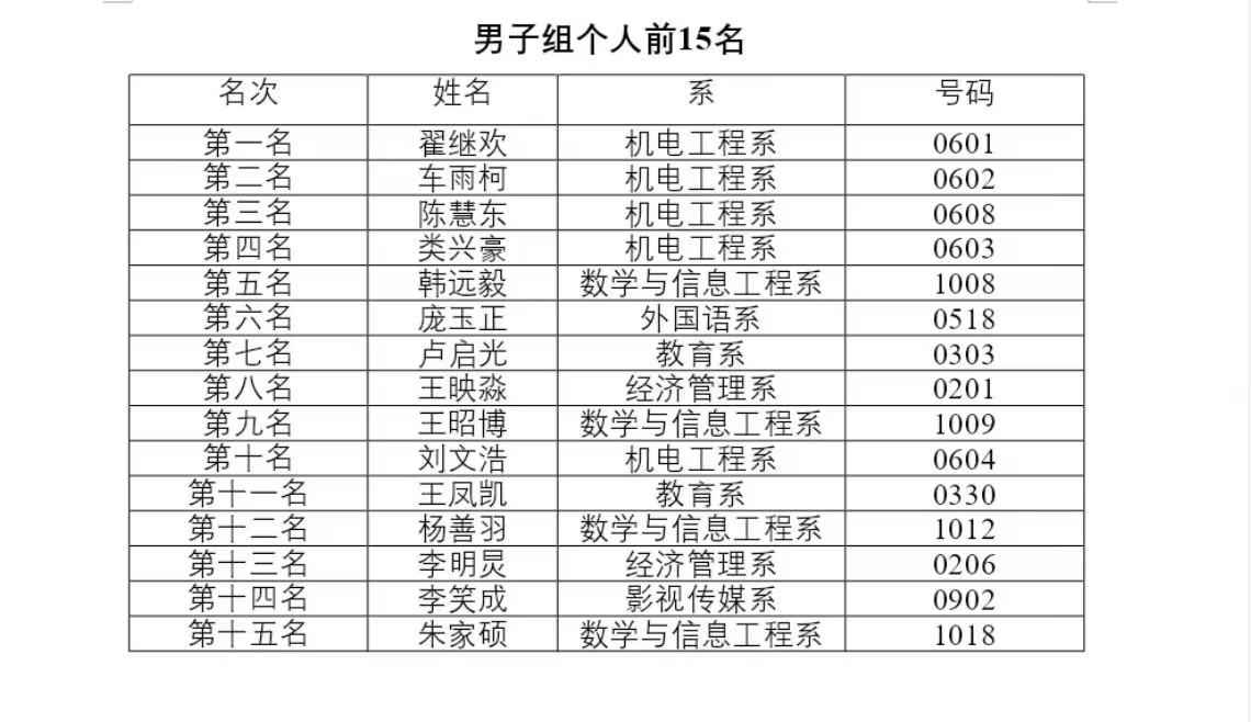 女子组个人前15名