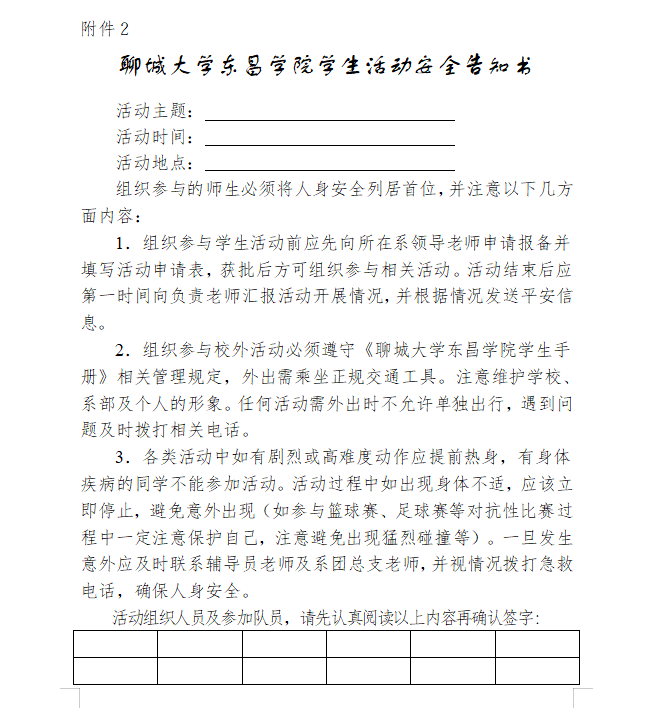 2.聊城大学东昌学院学生活动安全告知书