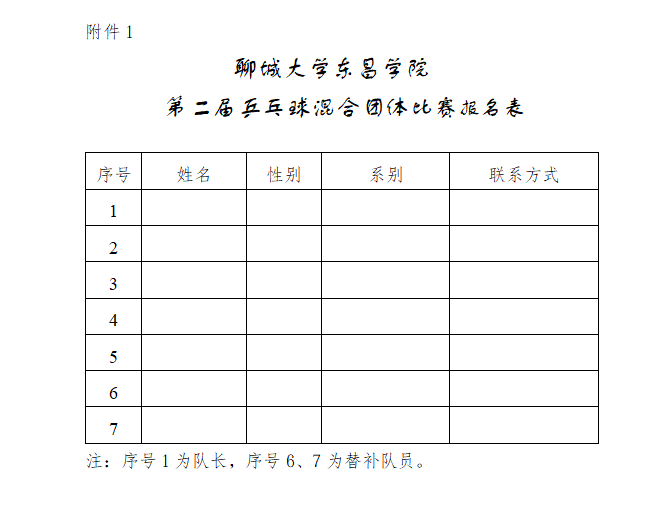 1.聊城大学东昌学院第二届乒乓球混合团体比赛报名表