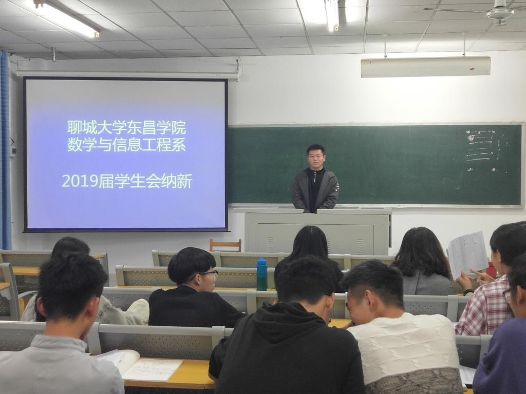 为壮大学生会的队伍,使“全心全意为同学服务”的宗旨得到更好的传承。10月24日下午4点,数学与信息工程系筹备已久的2019届学生会纳新工作在2号教学楼408教室正式开始。参加此次纳新的有团总支书记牛雪婷,18级辅导员老师张凤荣,18级辅导员老师田秀娟,主席团全体成员以及各部门部长。