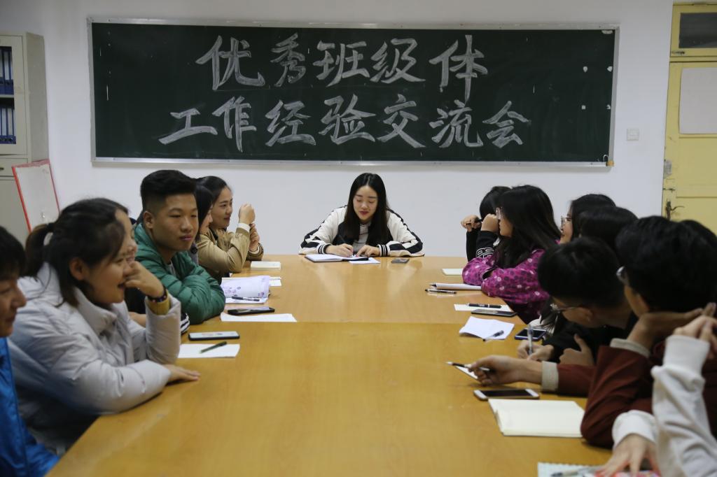 为进一步将社会主义核心价值观融入班级管理工作,加强学生自主管理,促进学生全面发展,11月4日晚,中文系在1号教学楼208学生会办公室举办优秀团支部工作经验交流大会。17级和18级各班级班长、团支书参加本次交流大会。学生助理黄延洁主持会议。