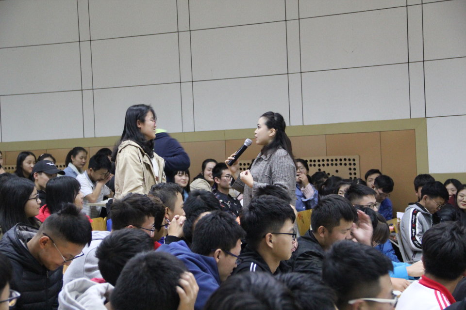 讲座开始,邵老师以幽默风趣的话语为同学们讲述自己的大学生活,引出同学们在大学生活中存在的问题。紧接着,邵老师通过提问的方式与同学们进行互动,营造出轻松愉悦的气氛。随后,邵老师针对人际关系的处理及自我认知和角色变化等几大问题为同学们提出了有效的建议。最后,由前学生会主席刘家岩学长和16级软件工程专业王琳学姐向同学们分享他们的大学生活,他们通过自身经历为同学们提供了有效的学习方法,告诉同学们如何充实自己的大学生活。