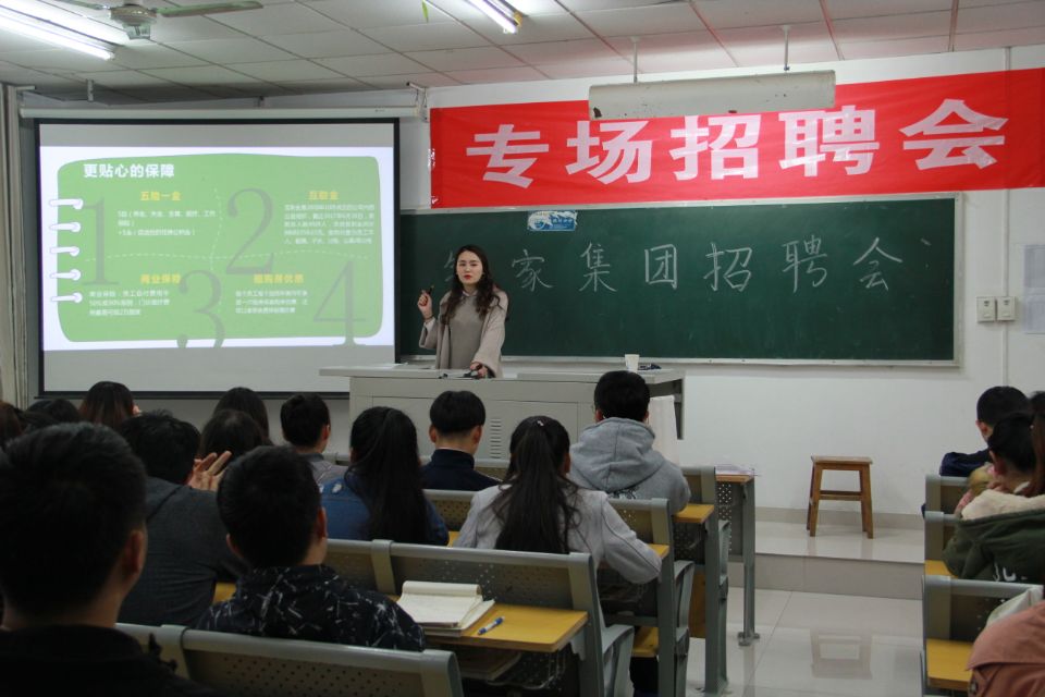 针对当前就业形式与就业政策,李经理先以一段宣传片为开场,使同学们对链家的发展历程与发展规模有了一个简单的了解。随后,李经理由毕业生毕业后所面临的租房问题进入宣讲会的主题,简短的介绍了主营业务,如销售旅居、新房、资产管理等。作为以数据驱动、提供从线上到线下服务的全价值链家房产服务平台,链家一直是行业的引领者,同时对其招聘岗位的同学要求是本科及以上学历,阳光踏实,务实进取,有理想有追求,具备良好的心理素养和团队合作精神。最后,李经理为同学们简述了员工的晋升路线以及工资保障,并对有意向的应届毕业生进行了面试初试。