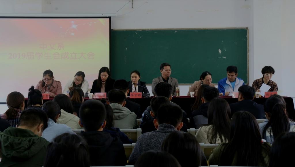 为加强对新一届学生会成员的思想教育,提高学生组织的工作能力,10月27日上午,中文系于一号教学楼315多媒体教室召开2019届学生会成立大会。中文系党总支书记、主任刘广星,中文系党总支副书记徐宏霞,中文系教学秘书罗红娟,中文系辅导员王华、于文静、石莹莹、许文平及学生会新老成员参加了此次会议,会议由团总支老师周希芹主持。