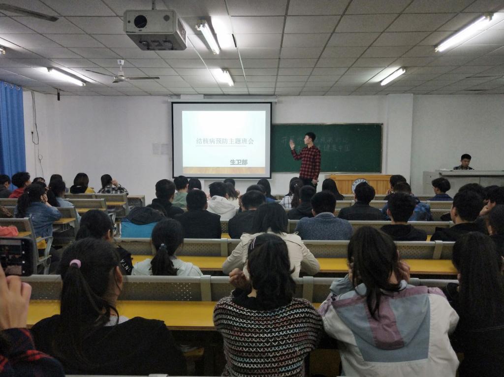 为做好结核病防控宣传工作,增强学生对传染病的防范意识,促进学生卫生习惯的养成,3月20日晚7点数学与信息工程系于2号教学楼314教室开展结核病预防主题班会。此次活动由我系学生会生卫部主办,我系18级全体同学积极参加。