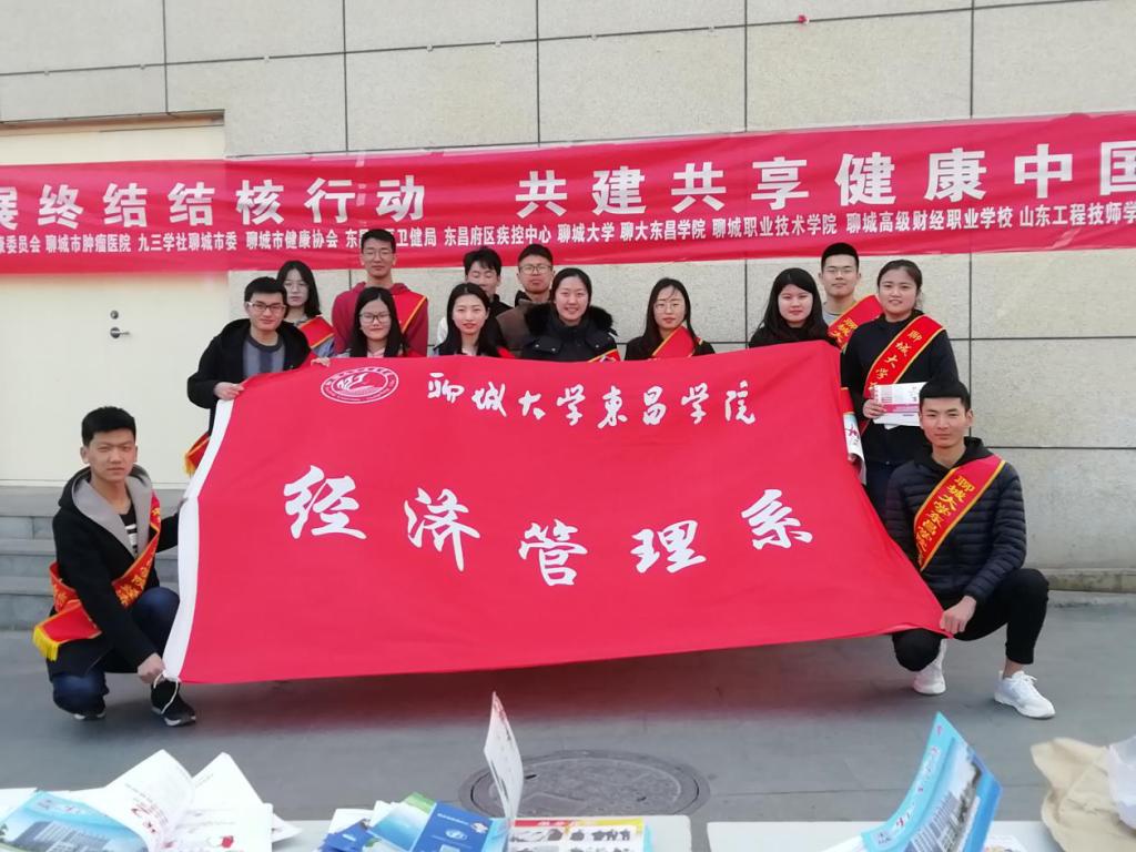 为增加群众对结核病危害的了解,普及现代结核病防治方法,宣传政府对结核病的防治规划目标和相关政策,3月24日,经济管理系志愿者团队前往亿丰生活广场参加了由聊城市卫生健康委员会、聊城市肿瘤医院、聊城市疾控中心等组织联合开展的以“开展终结结核行动,共建共享健康中国”为主题的结核病防治志愿宣传活动。