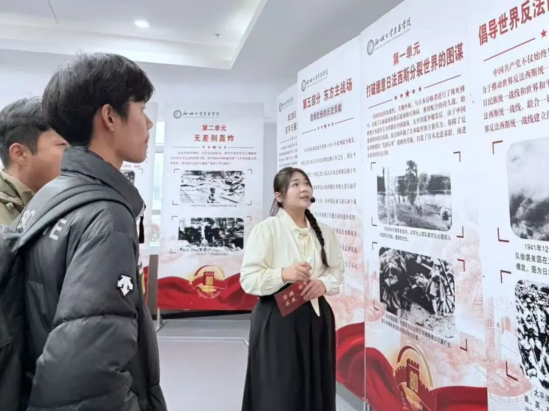 为深切缅怀抗战先烈的峥嵘岁月,传承弘扬伟大抗战精神,厚植青年学子爱国情怀,10月20日,经济管理系组织同学们于博观楼参观了“纪念中国人民抗日战争暨世界反法西斯战争胜利80周年”图片展,引导同学们在历史图景中接受思想洗礼,深刻感悟革命先烈舍生取义的崇高精神。
