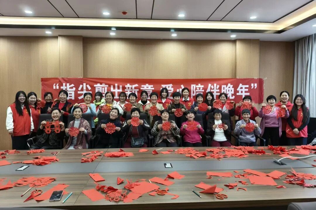 活动伊始,志愿者首先向现场老年人分发了剪纸工具与材料,并详细介绍了剪纸艺术的历史渊源和文化内涵,让老人们对这项传统民间艺术有了更深入的了解。在剪纸教学环节,志愿者们从最基础的折纸方法入手,耐心细致地分步演示剪纸技巧。对于操作节奏较慢或尚未熟练掌握要领的老人,志愿者们主动放慢节奏,反复示范、逐一讲解。老人们学习热情高涨,积极参与,不时与志愿者交流互动,现场欢声笑语不断。有的老人还分享了自己年轻时做手工的经历,与志愿者们共同回忆往昔岁月。在轻松愉快的氛围中,一件件精美的剪纸作品陆续完成。活动结束后,老人们高兴地举起作品与志愿者合影留念,记录下这温馨而难忘的瞬间。