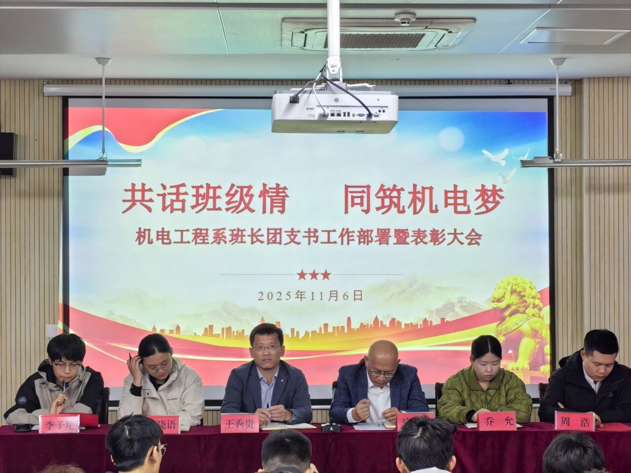 榜样提供方向,榜样鼓舞力量。为表彰先进,树立典型,激励广大学生干部奋发有为,11月6日下午,机电工程召开机电工程系班长团支书工作部署暨表彰大会。机电工程系党总支副书记王秀贵、团总支书记喻学涛、全体专职辅导员及班长团支书参加此次会议。会议由辅导员周浩主持。